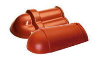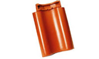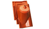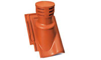 Черепица с вентиляционным выходом. Штучная фасонная черепица из керамики с интегрированной вентиляционной трубой для проветривания канализационного стояка. Установка осуществляется в процессе монтажа керамической черепицы. |